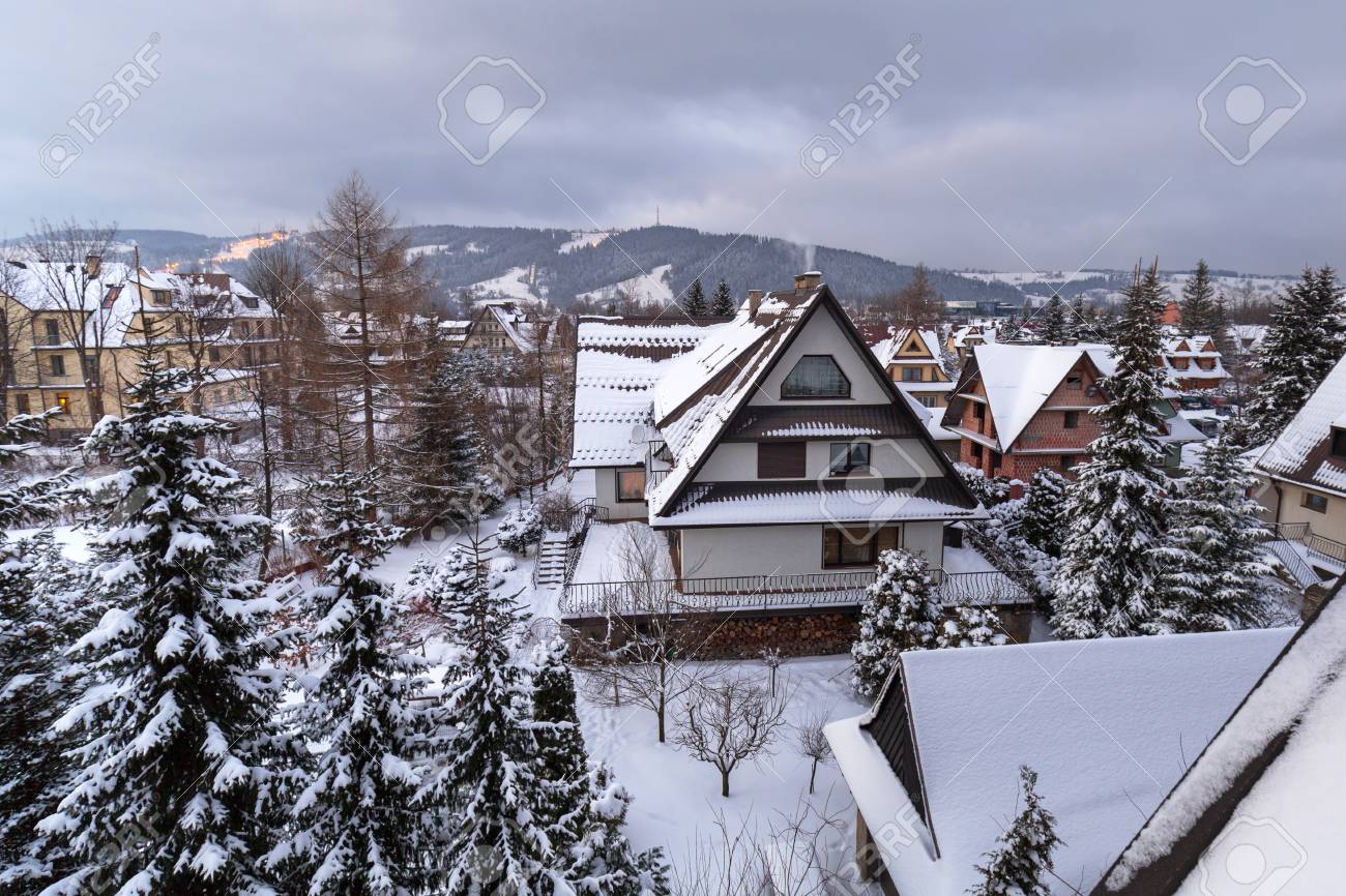 Zakopane Poland Winter . Architecture Of Zakopane At Winter, Poland.